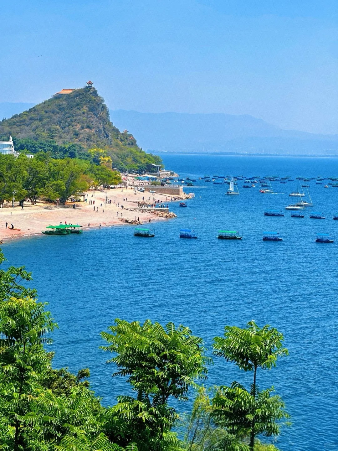 下午前往抚仙湖。每一个走近抚仙湖的人,无不沉醉于她的波光艳影。【抚仙湖】这里的水质好,湖水清澈见底。古人称为“琉璃万顷”。您可以拿着您的相机,尽情的拍摄抚仙湖美景。或者也可以懒懒的晒晒太阳,享受着远离尘嚣难得的新鲜空气,远眺碧波好不惬意。