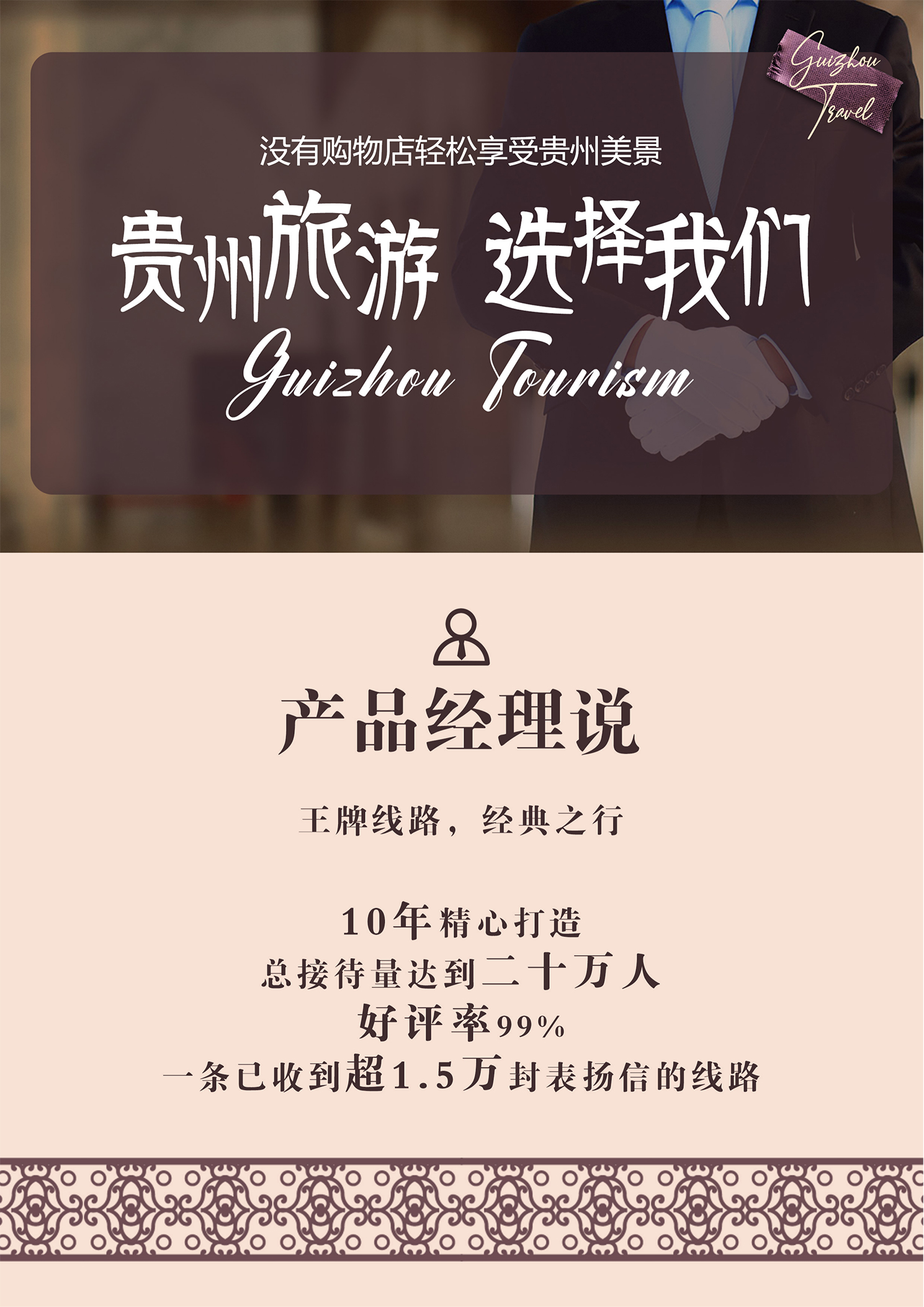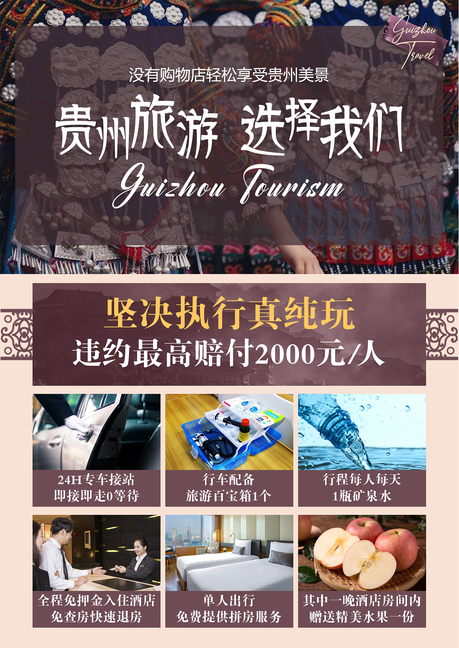 备注:本产品执行真正纯玩,违约最高赔付2000元/人,贵州省大部分景区、酒店、餐厅都有其商业服务配套,甚至还会有讲解员为游客推荐解说,这并非我社安排的购物店范畴,请根据自身所需谨慎选购,此类投诉恕我社无法受理,敬请留意。