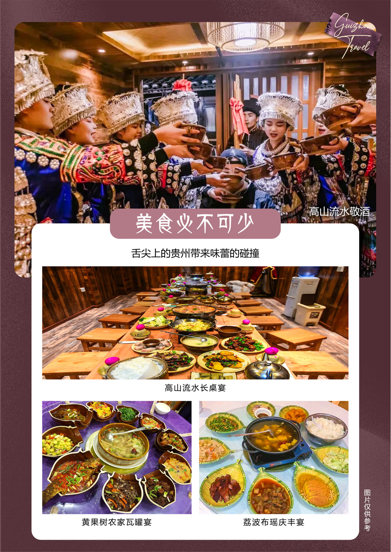 早餐:√ 中餐:高山流水长桌宴 晚餐:× 住宿:安顺