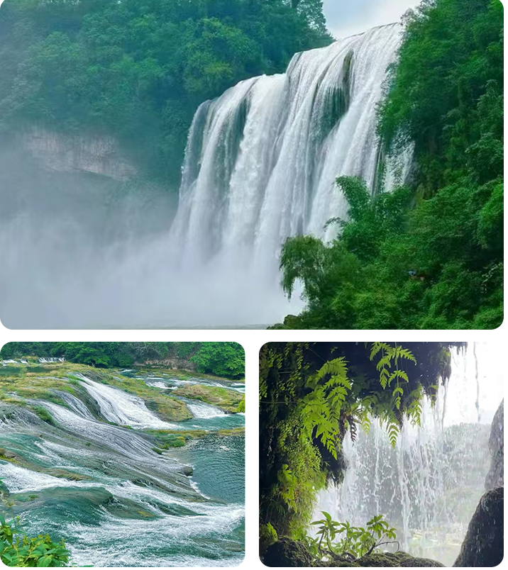早餐后乘车前往安顺国家5A级景区——【黄果树风景名胜区】,需换乘景区观光车(50元/人、景区保险10元/人,费用需自理;不含大瀑布扶梯单程30元/人,双程50元/人,属景区自愿消费项目)游览。