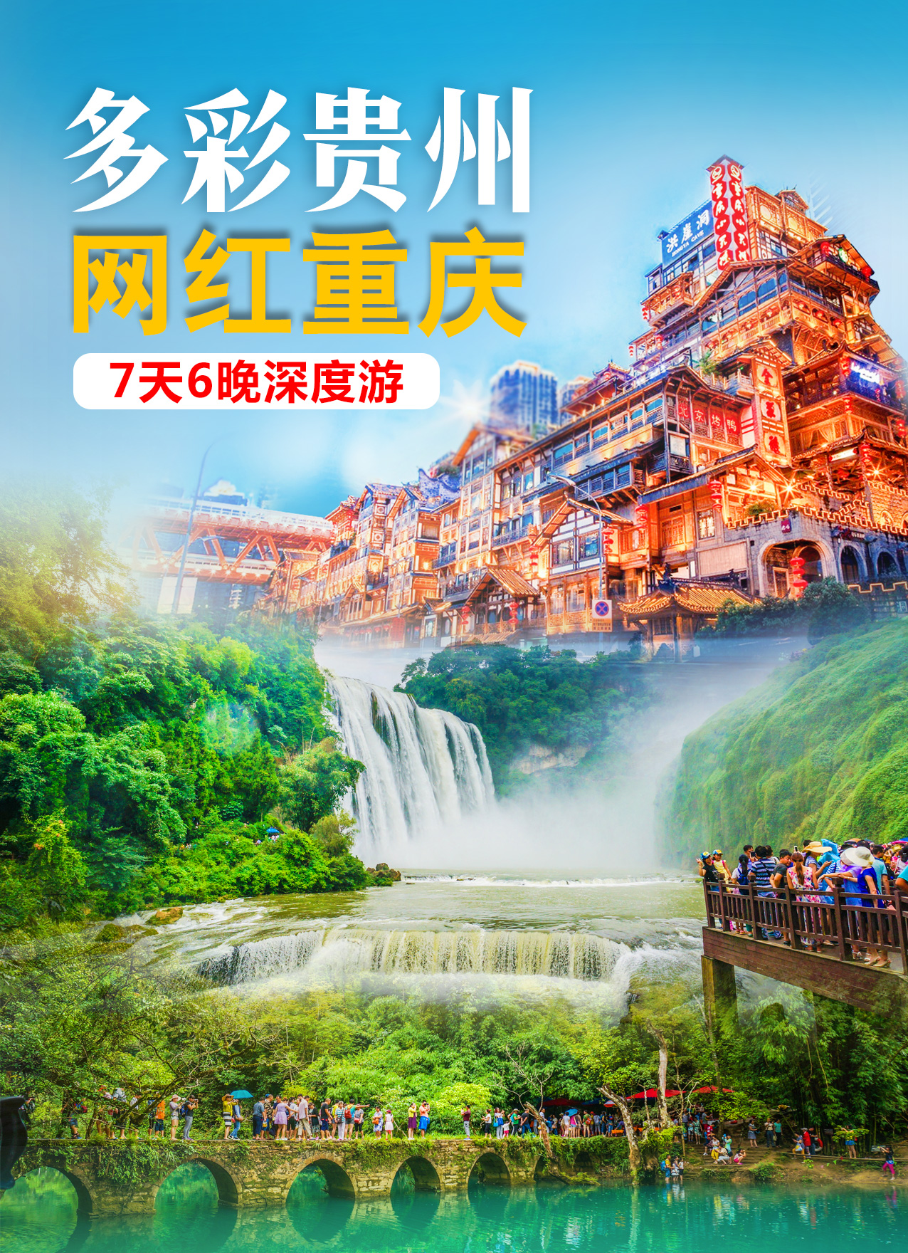 多彩贵州·网红重庆7天深度游-西江千户苗寨、黄果树瀑布、荔波小七孔、青岩古镇、遵义十二背后探洞、洪崖洞、轻轨穿楼、磁器口