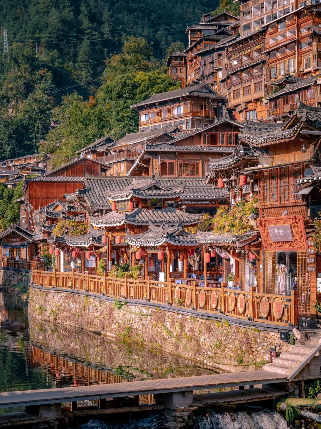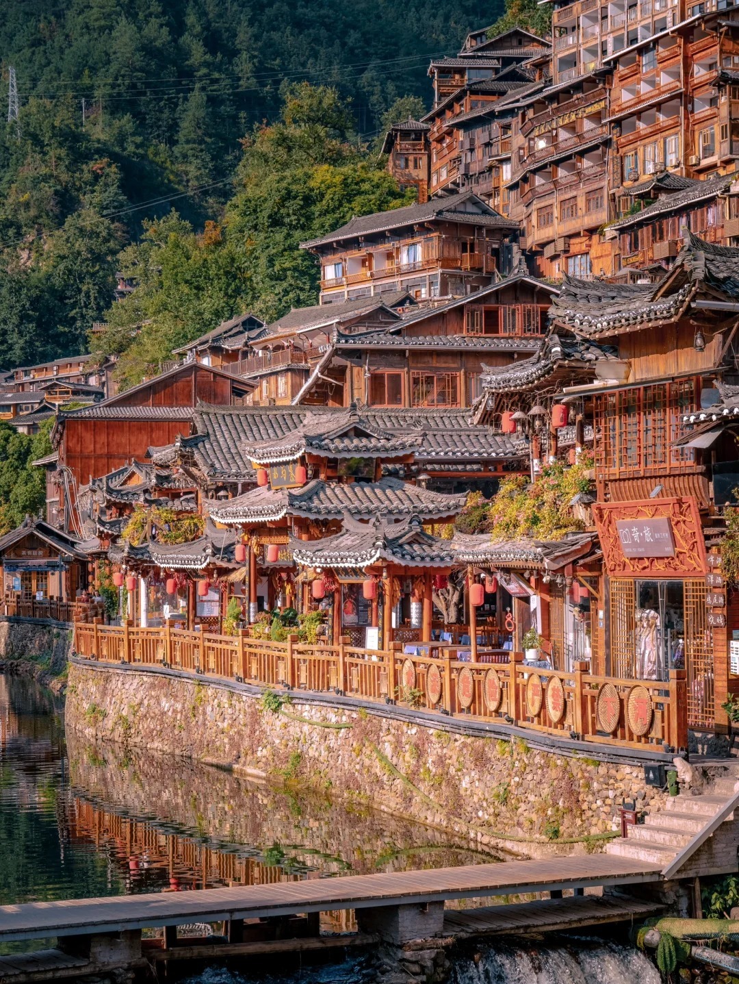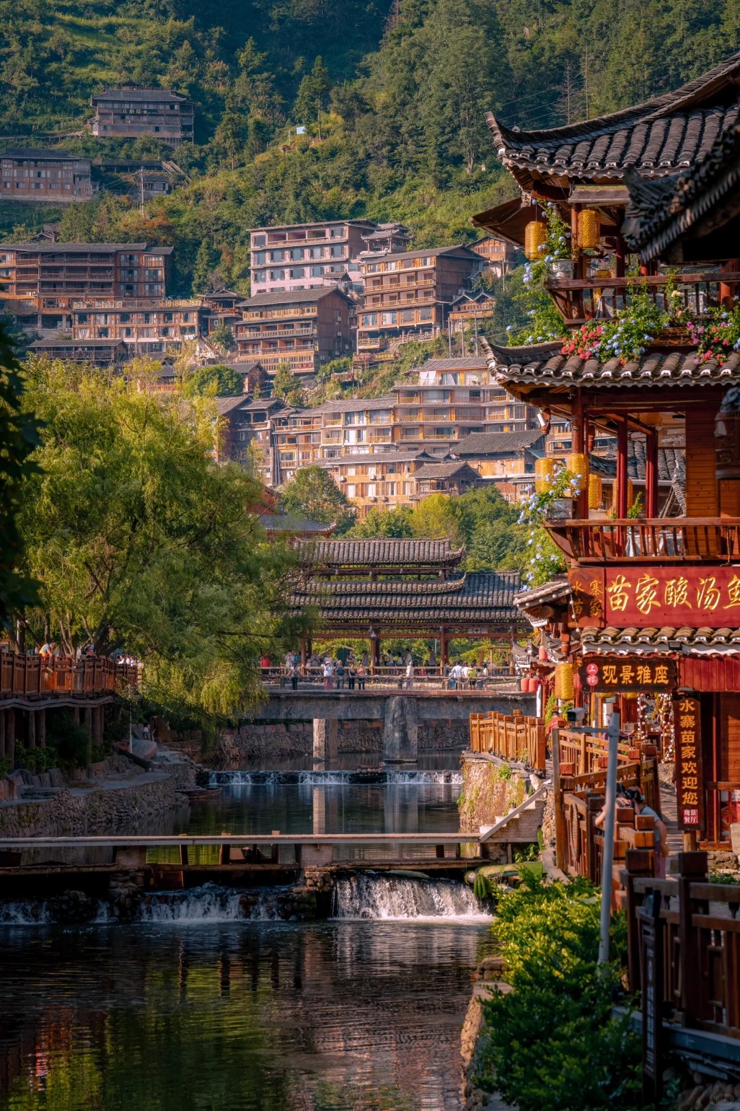【西江千户苗寨】聚居着众多的苗族人,被誉为“苗都”。寨子座落于河谷,四面群山环抱,重峦叠嶂,河水将西江苗寨一分为二,层层叠叠的吊脚木楼,从河两岸依着山势,迤逦向上展开,连绵成片的红彤彤板壁。