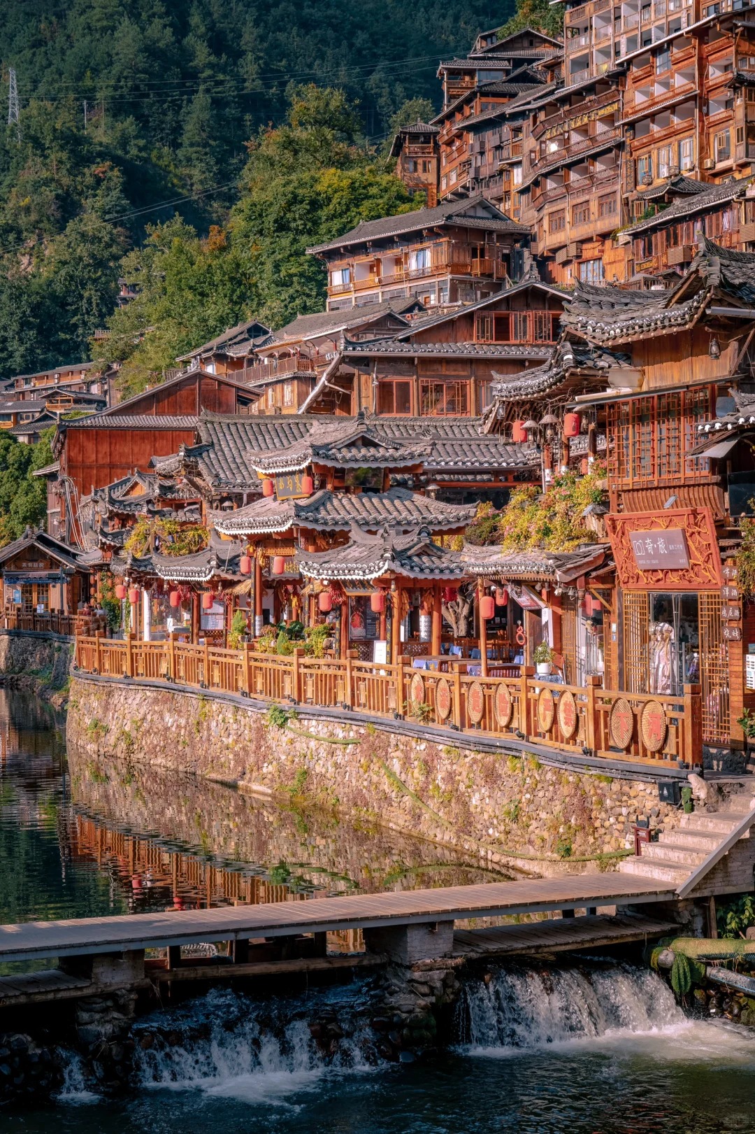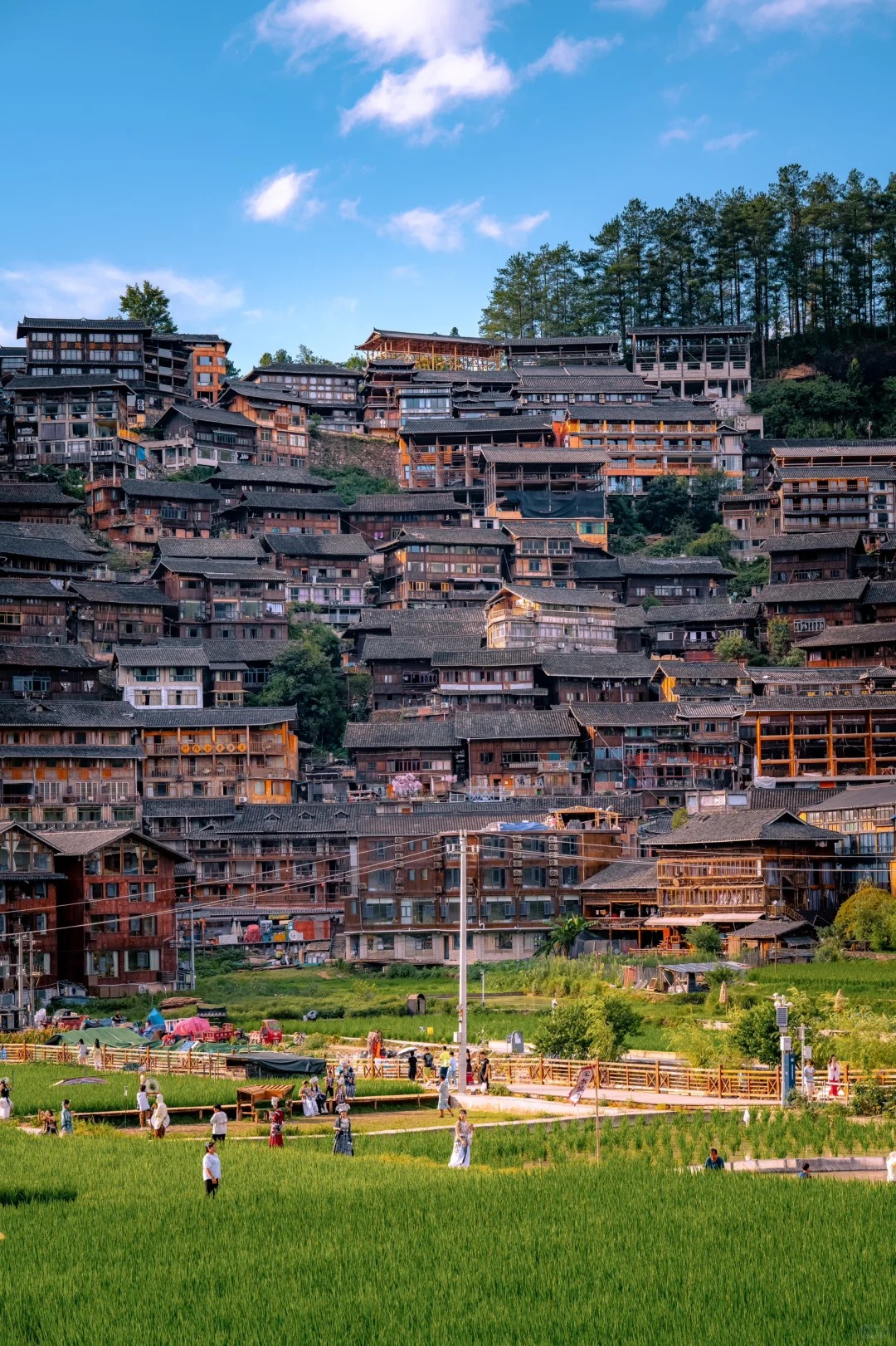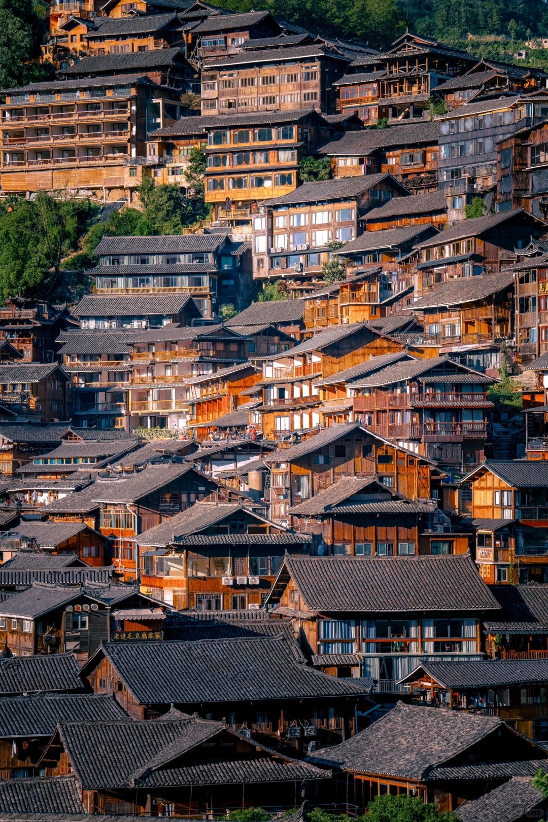 【西江千户苗寨】聚居着众多的苗族人,被誉为“苗都”。寨子座落于河谷,四面群山环抱,重峦叠嶂,河水将西江苗寨一分为二,层层叠叠的吊脚木楼,从河两岸依着山势,迤逦向上展开,连绵成片的红彤彤板壁。