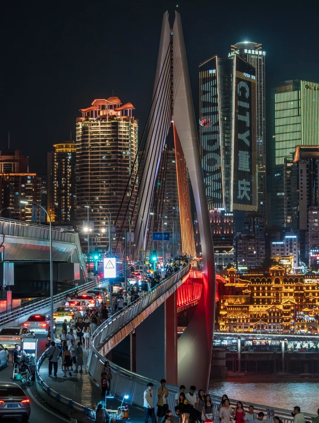 中餐后集体乘车(车程3.5h)前往重庆,然后走同行的好友以自行队去吃火锅,晚上集体一起乘车前往千与千寻的洪崖洞、千厮门大桥,欣赏长江边的吊脚楼夜景,在歌剧院拍剪影,之后返回酒店休息。