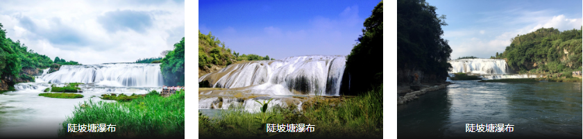 陡坡塘瀑布(83版西游记片尾曲取景之处)(游览时间约1H)陡坡塘瀑布在黄果树瀑布上游1公里处,是一个高21米,宽达105米的天然坝型瀑布,也是黄果树瀑布群中宽的瀑布。洪水时节,瀑布会发出汽笛叫声,俗称吼瀑;
