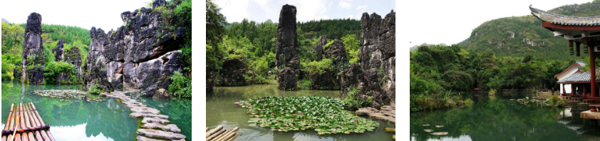 游览天星桥上半程,这里石笋密集,植被茂盛,集山、水、林、洞为一体,被游人称赞为:“风刀水剑刻就”的“万倾盆景”。