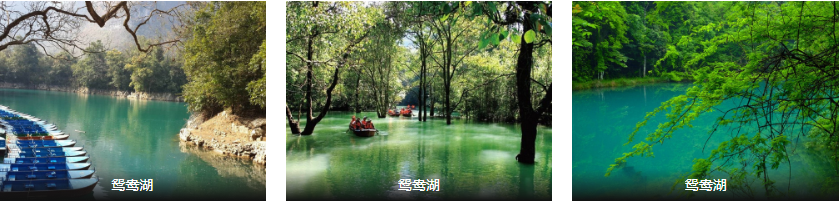 穿越重重森林,你会惊喜地发现两大片蓝蓝的湖水,静静地躺在森林树木环抱之中。登舟人湖,摇桨而行于这一名为鸳鸯湖的美丽湖泊中,细心人会发现湖水的颜色浓淡不一,竟有红、橙、黄、绿、青、蓝、紫七色。