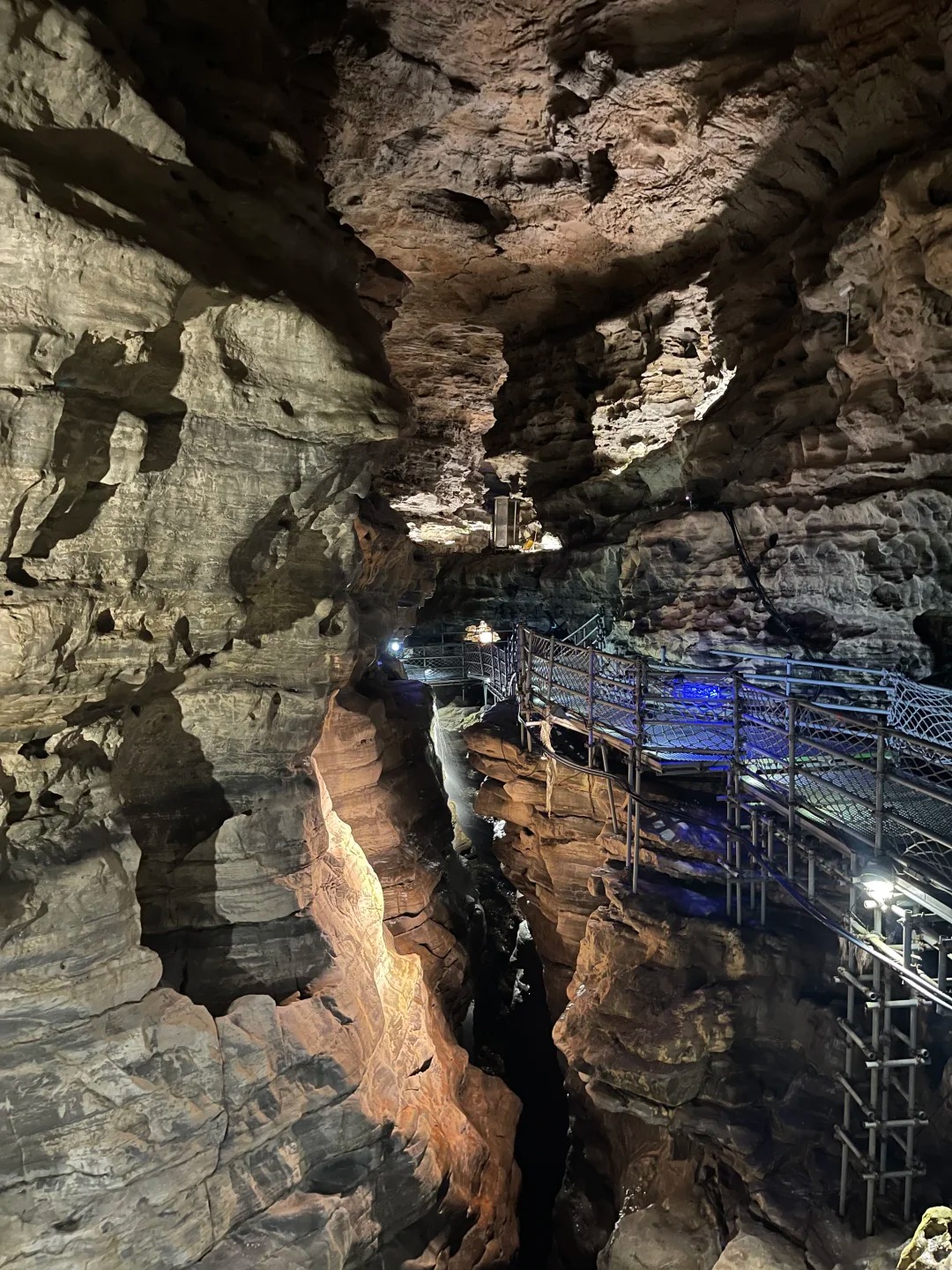 中餐后前往地下裂缝景区,洞内因有中国目前为止发现的唯一地下大裂缝而得名,洞内常年恒温15摄氏度,冬暖夏凉,空气清新,是负氧离子含量很高的一个天然氧吧。