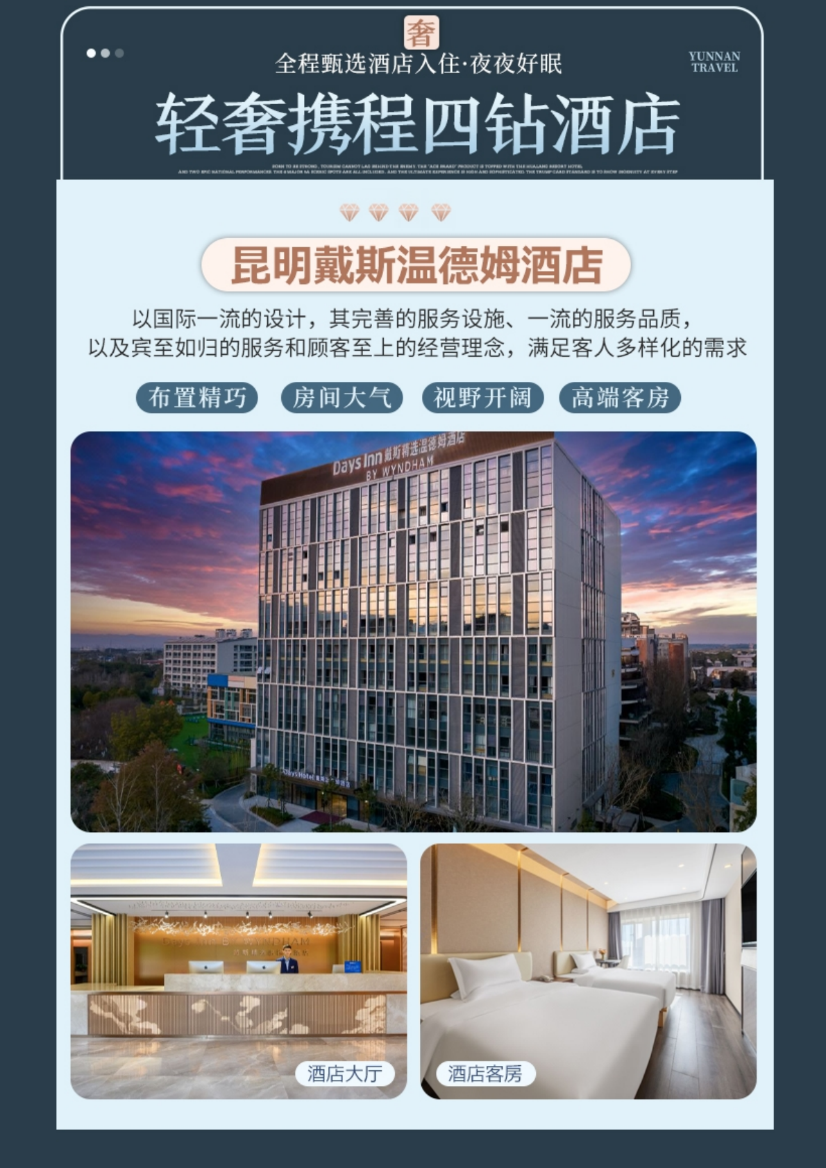 住宿:全程指定特色酒店(4晚3钻+1晚温德姆)