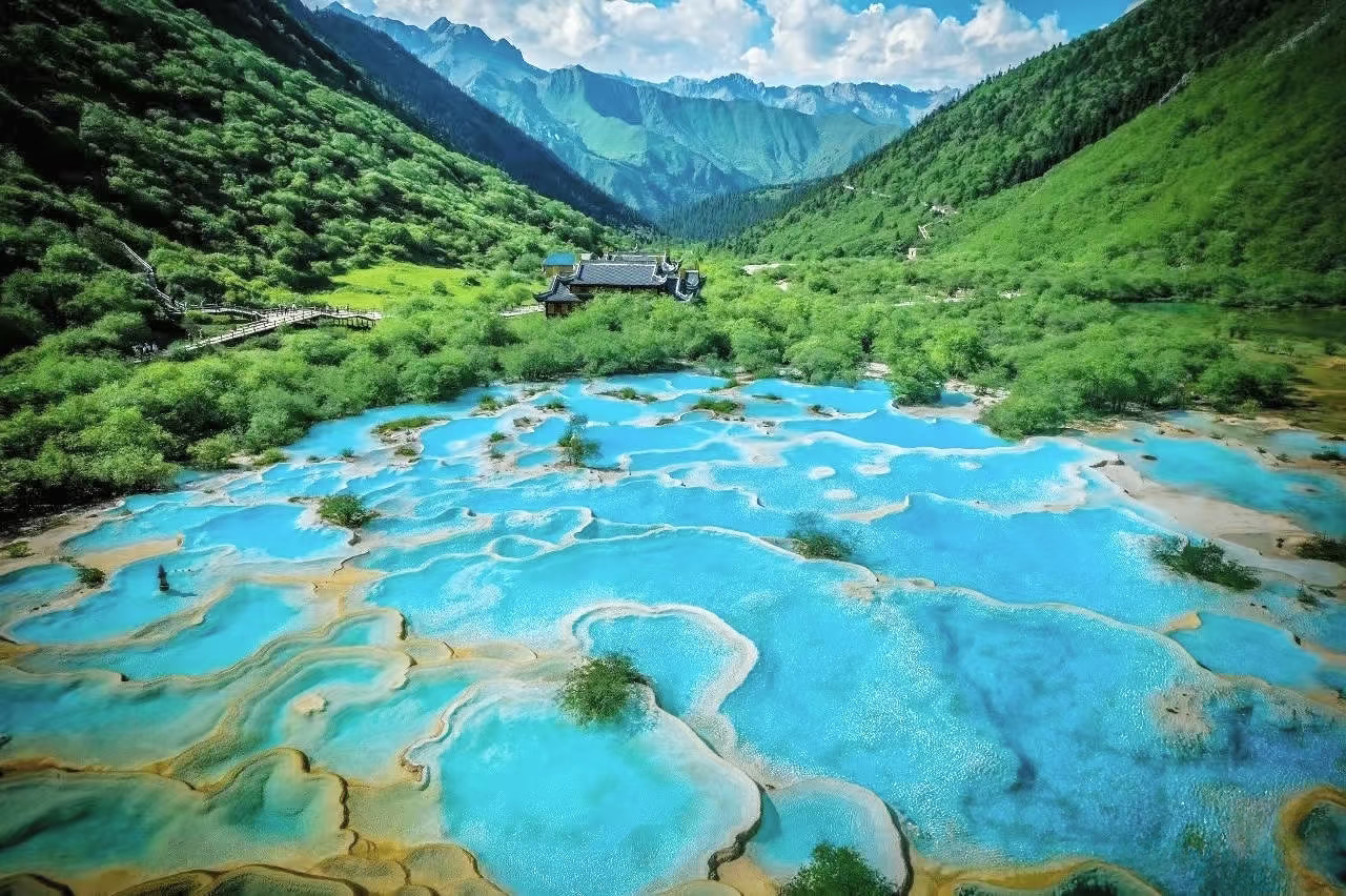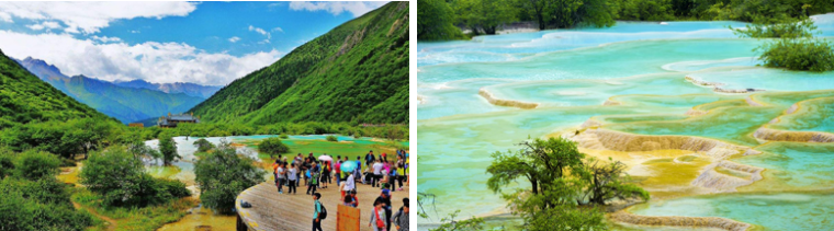 【黄龙风景名胜区】(5A景区门票已含 自理黄龙上行索道80元/人,下行索道40元/人、电瓶车20元/人、黄龙定位讲解器30元/人,黄龙索道保险 5/人/段需自理)