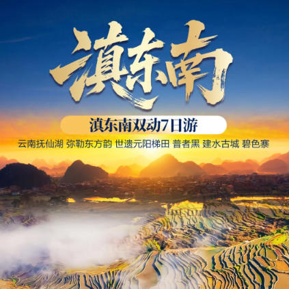 滇东南双动7日游-元阳梯田/普者黑/建水古城/抚仙湖/弥勒东方韵