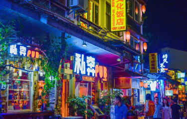 之后前往 西街,夜里,华灯初上,眩目的霓虹灯惊醒了中国洋人街—【阳朔西街】。