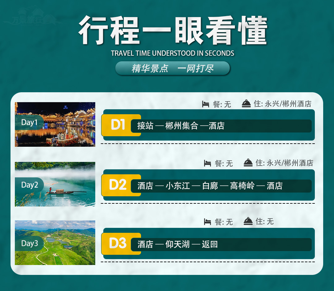 住宿:入住2晚当地准四精品酒店(郴州市或县城)。参考(尚尔/高职院/府上等)