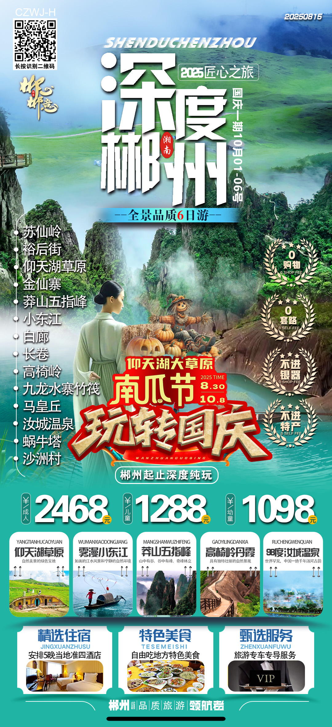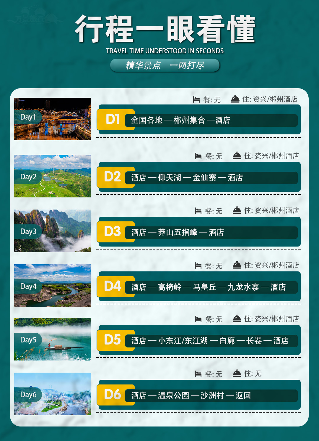深度郴州6天动车团-小东江+高椅岭+莽山+汝城+仰天湖+金仙寨+竹筏九龙水寨+白廊+长卷+裕后街+马皇丘/瓦窑坪