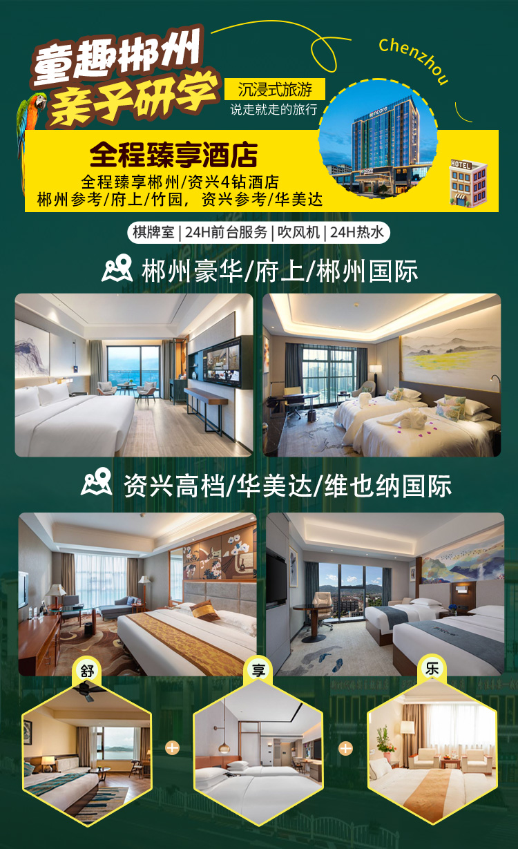 住宿:入住2晚郴州或资兴4钻酒店(上图有参考酒店)