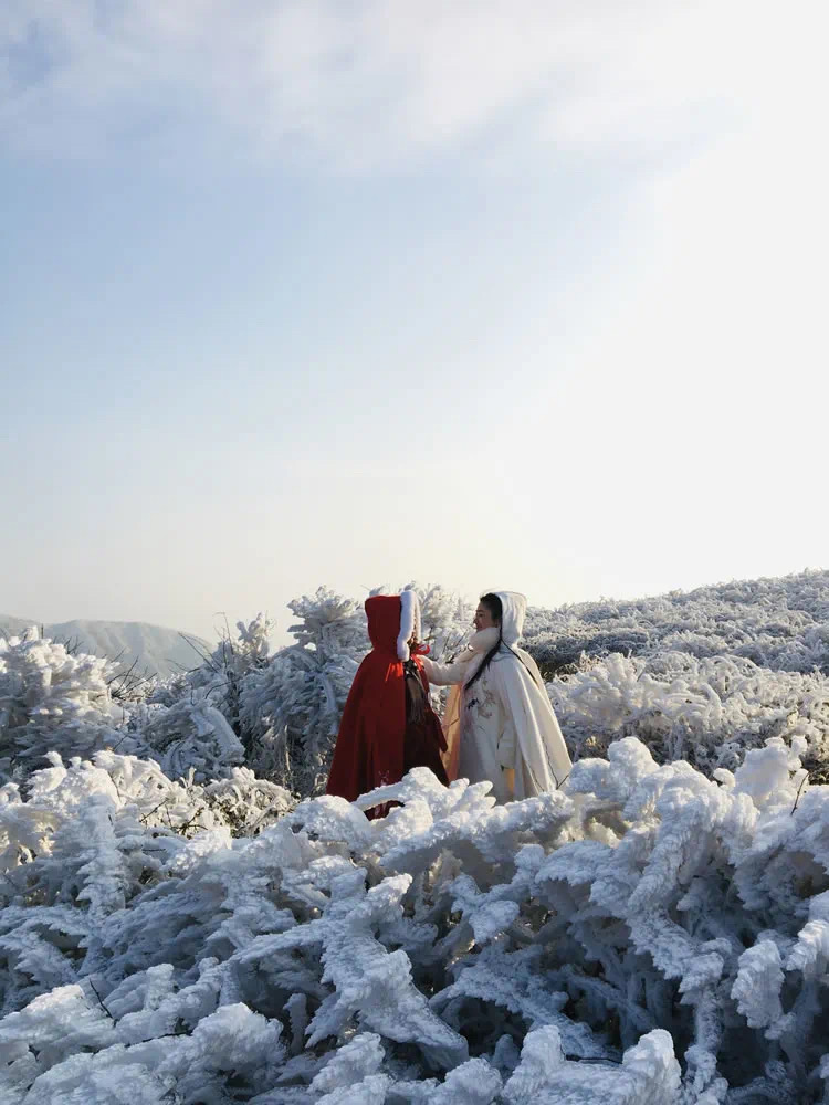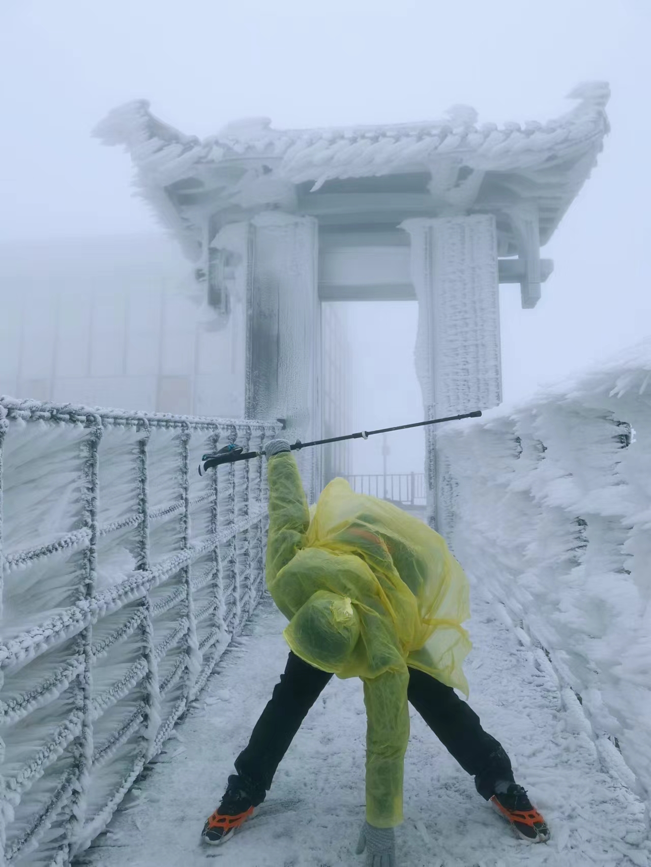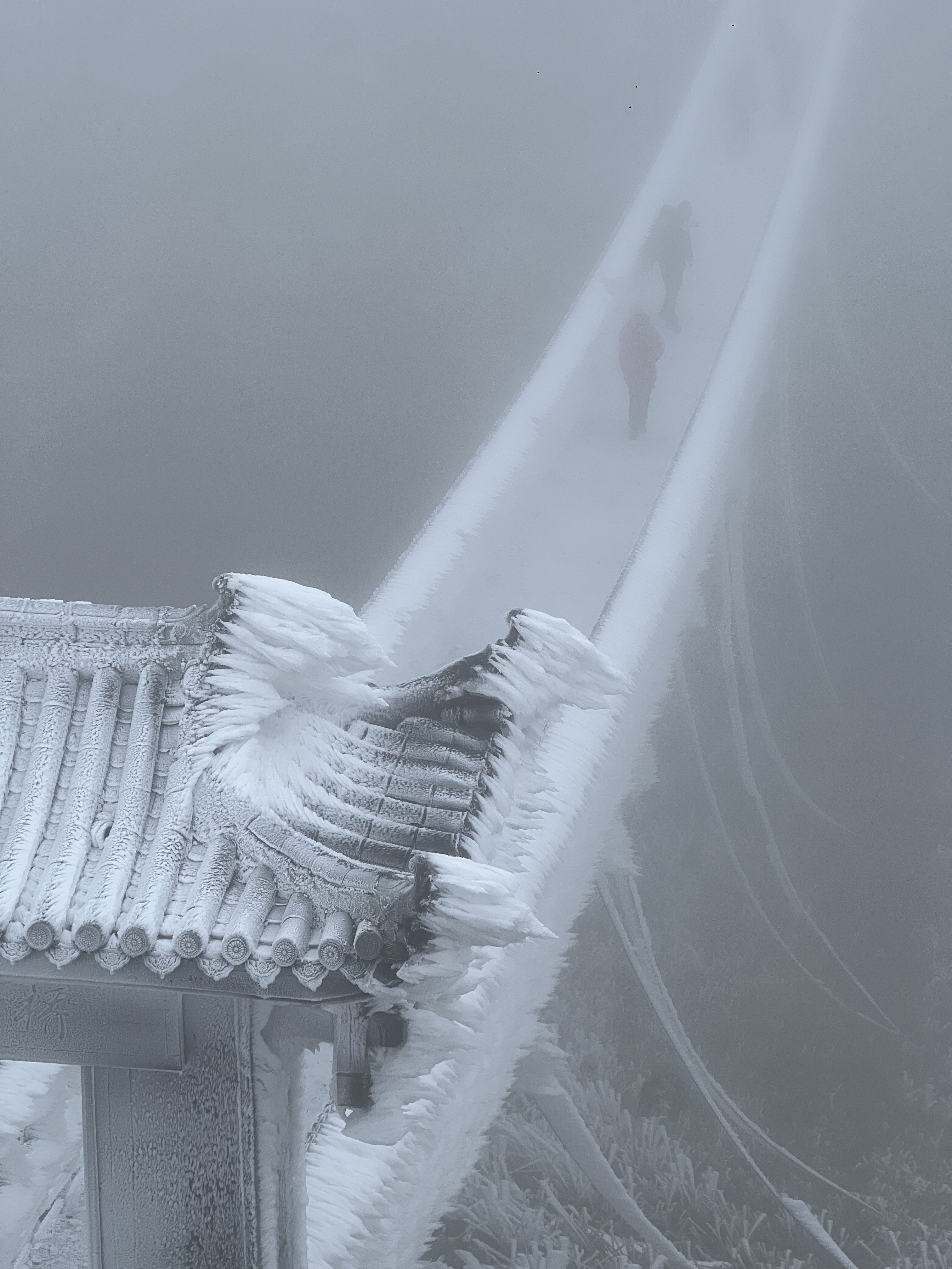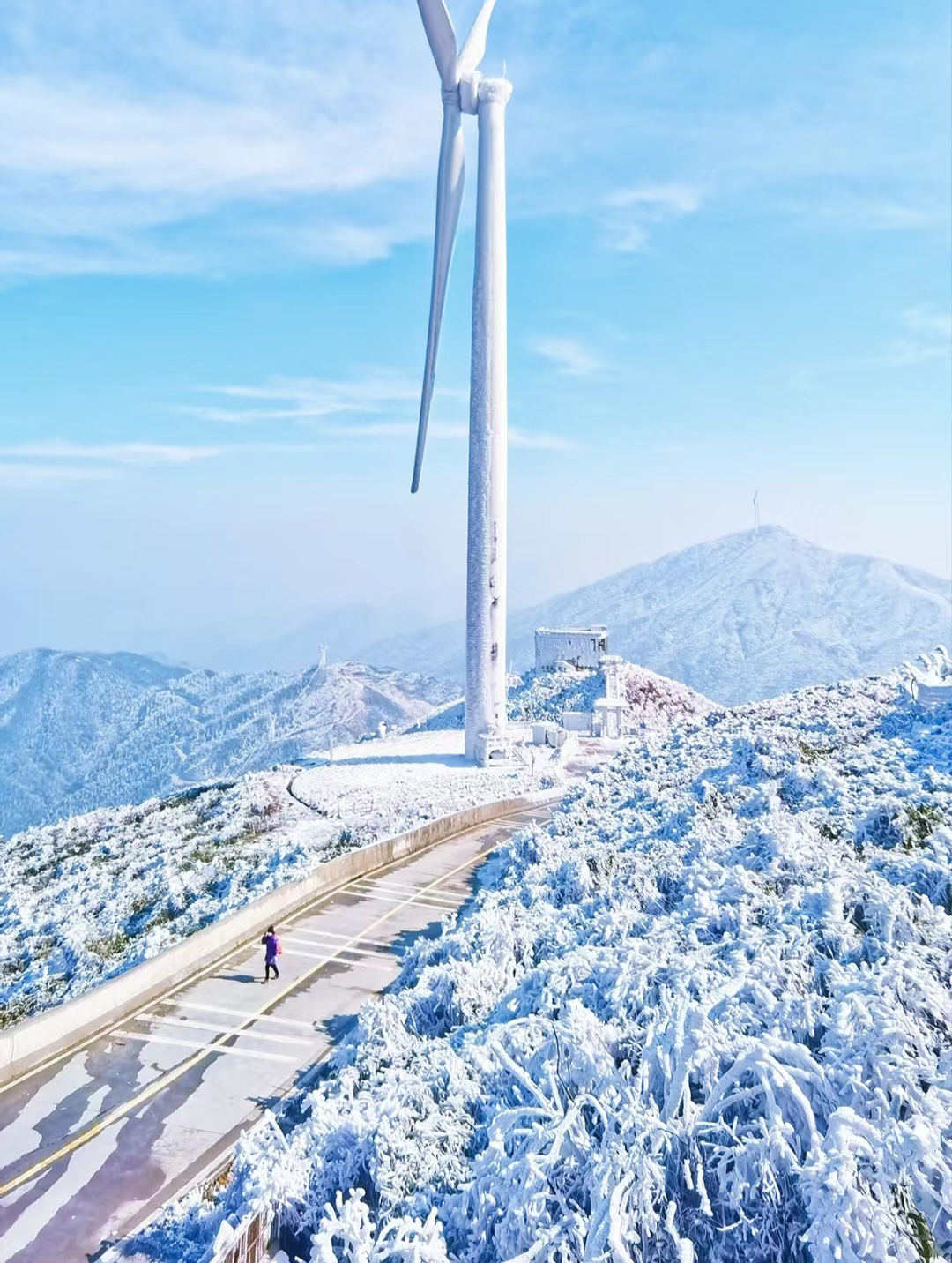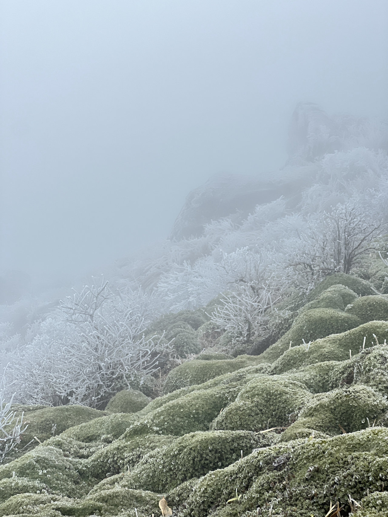 09:30左右到达云冰山,搭乘景区观光车上山(如下雪导致不能坐环保车费用不退),云冰山海拔约1500米,风景区主要是都庞岭、西峰岭、东边岭、葫芦岭四座山峰,与广东省连州市交界。景区内自然生态资源特点突出,以梦幻云海、浩瀚星空、古韵民宿、高山杜鹃、奇特冰挂、稀有苔藓、竹林溪谷等为主要核心旅游资源。被誉为华南的“避暑圣地”“人间仙境”“云海秘境”“南方雪乡”