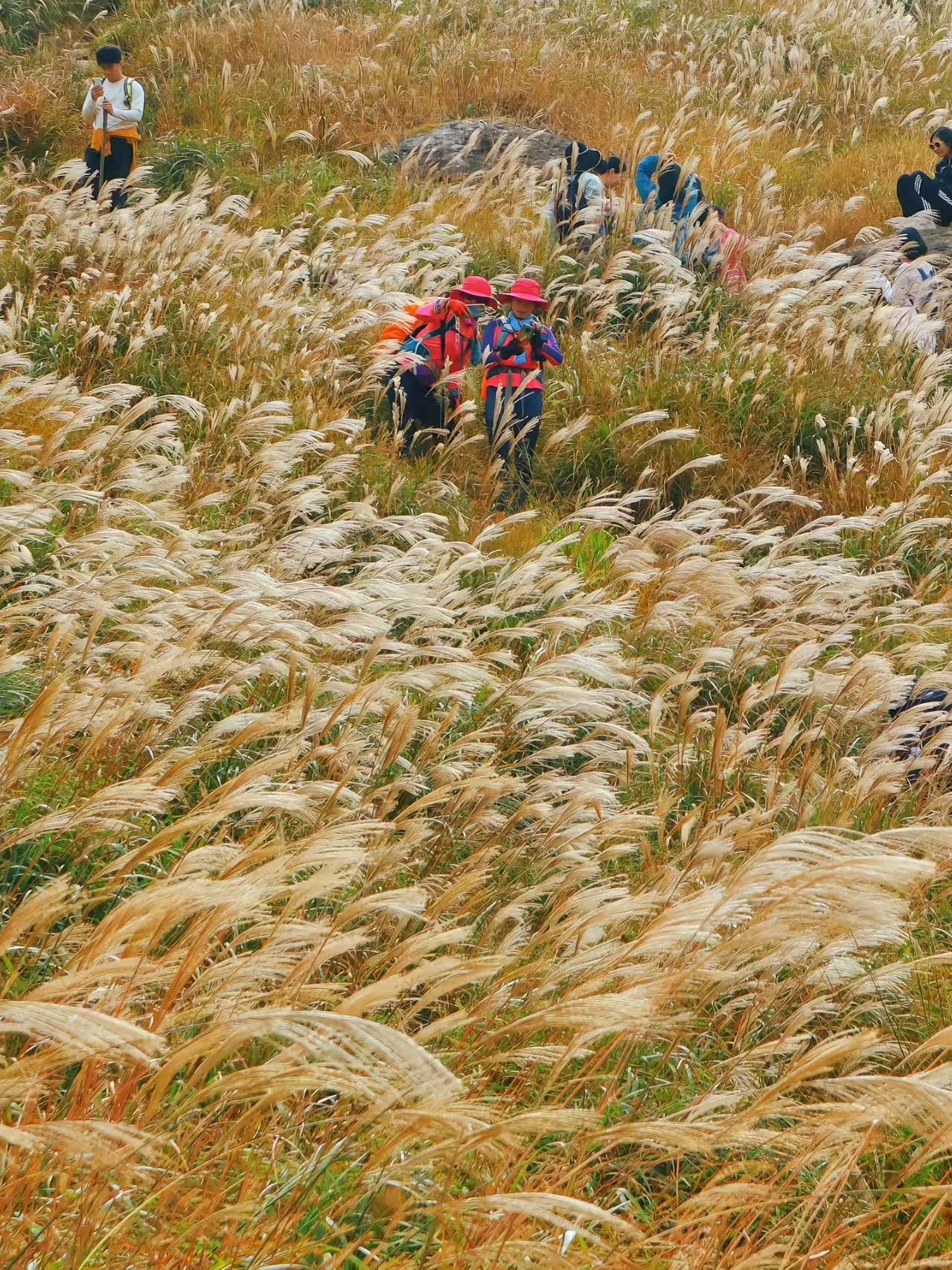 惠州大南山,满山遍野的芦苇开花啦!现在正是秋高气爽时,漫山遍野的芦苇在风中摇曳,仿佛金色海洋中的白色浪花。