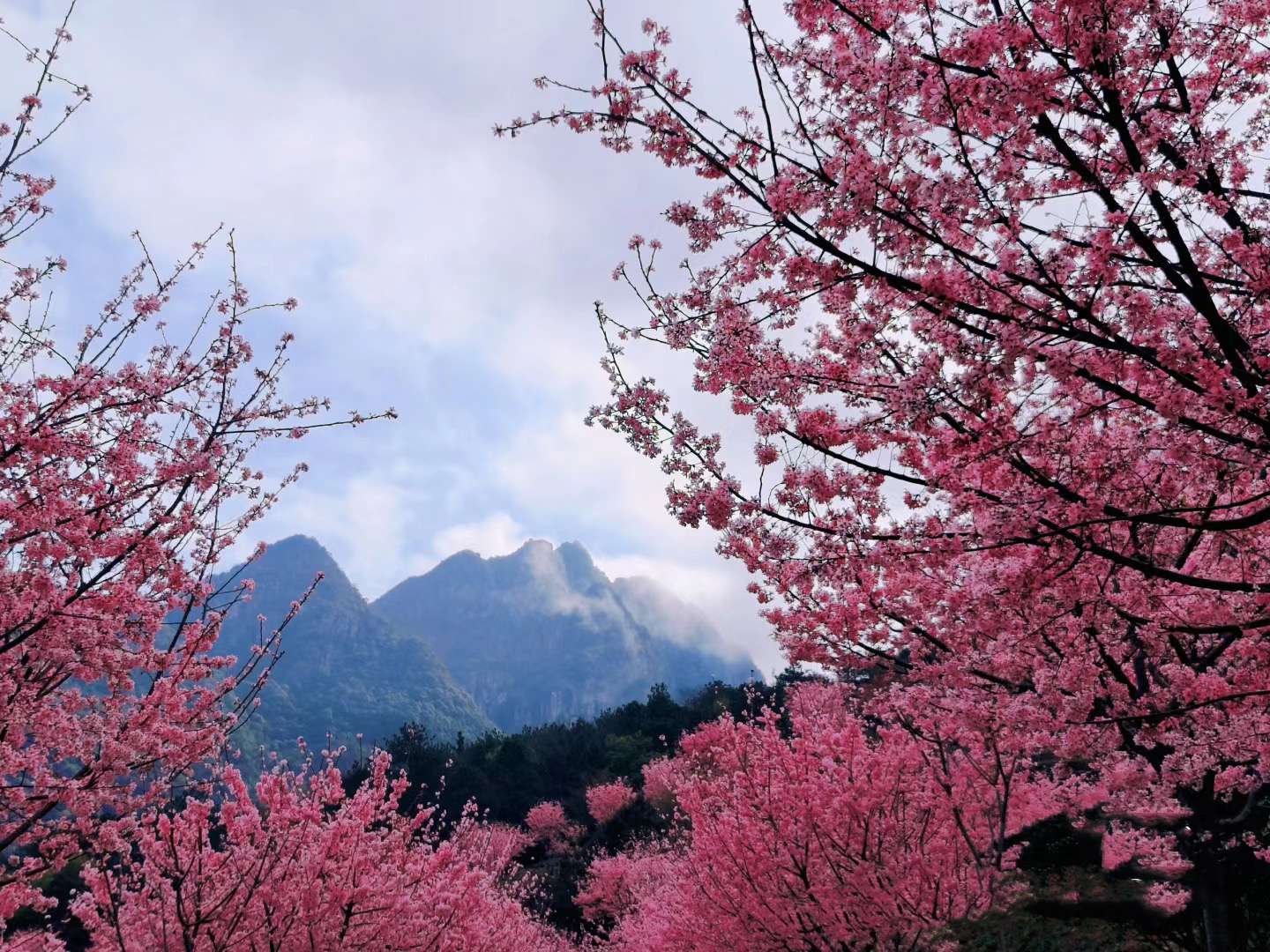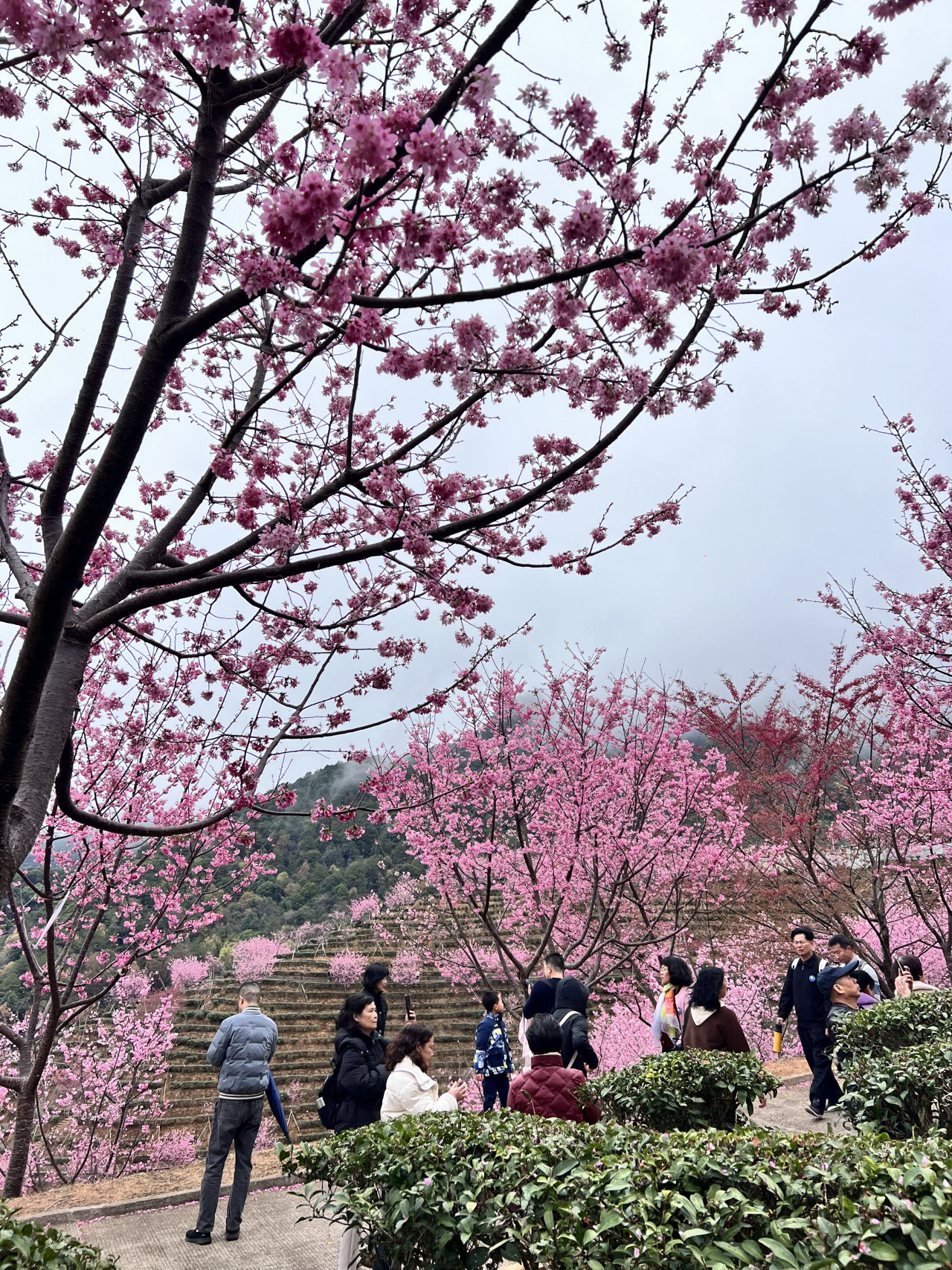 09:00左右阴那山樱花园赏樱花,主要有红粉佳人、本地山樱、牡丹樱、香水樱等品种。