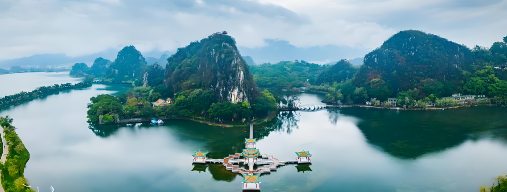 【七星岩风景区】景区由五湖、六岗、七岩、八洞组成,以喀斯特溶岩地貌的岩峰、湖泊景观为主要特色,七座排列如北斗七星的石灰岩岩峰巧布在面积达6.3平方公里的湖面上,故名“七星岩”;