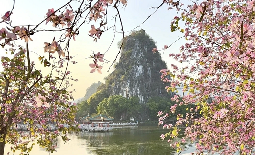 七星岩摩崖石刻是南中国保存得最多最集中的摩崖石刻群,记载了自古名人游玩七星岩的踪迹。每年3月-4月中旬,景区内外【宫粉紫荆花】绽放盛开(花期不受人为控制,以实景为准)
